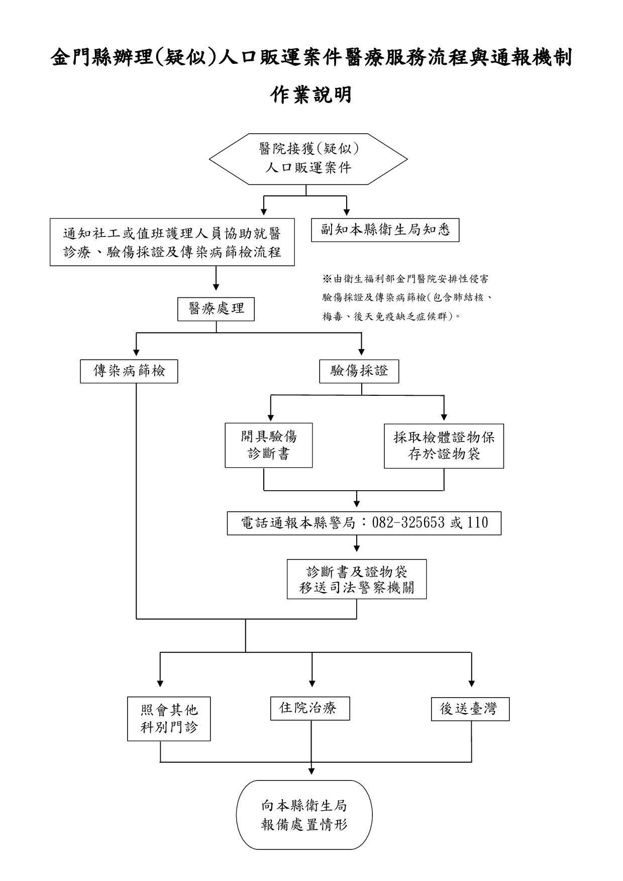 七、本縣辦理(疑似)人口販運案件醫療服務流程與通報機制作業說明(如附件)